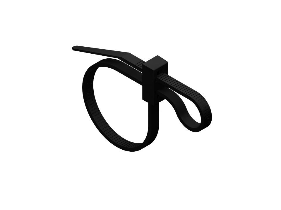 In the double-type clip, the second loop is used for fixing or securing a second parallel cable tie without requiring another cable tie.
