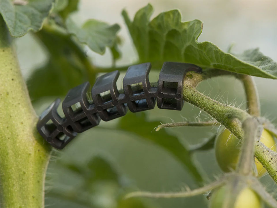 - Hold the plant stem with your other hand, bring the clip close, and close it under one or two branches.