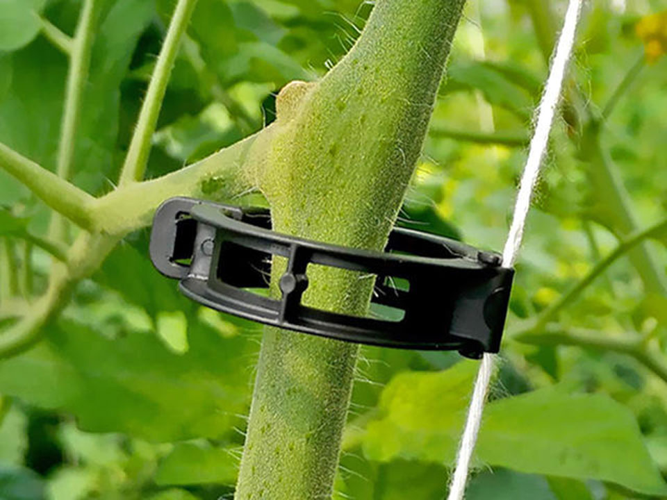 - Secure the plant: Hold the plant stem with your other hand, bring the clip under one or two branches, and close it.